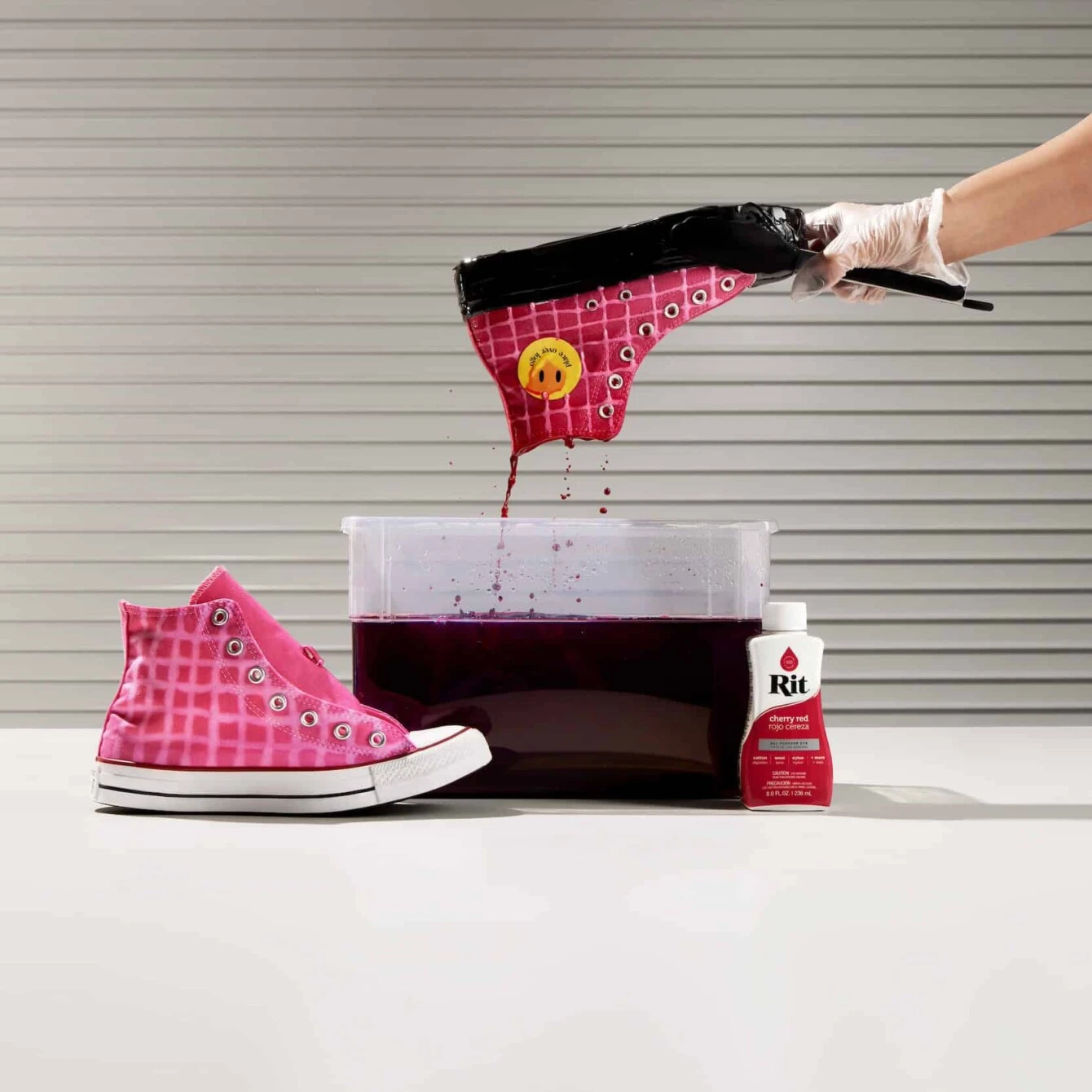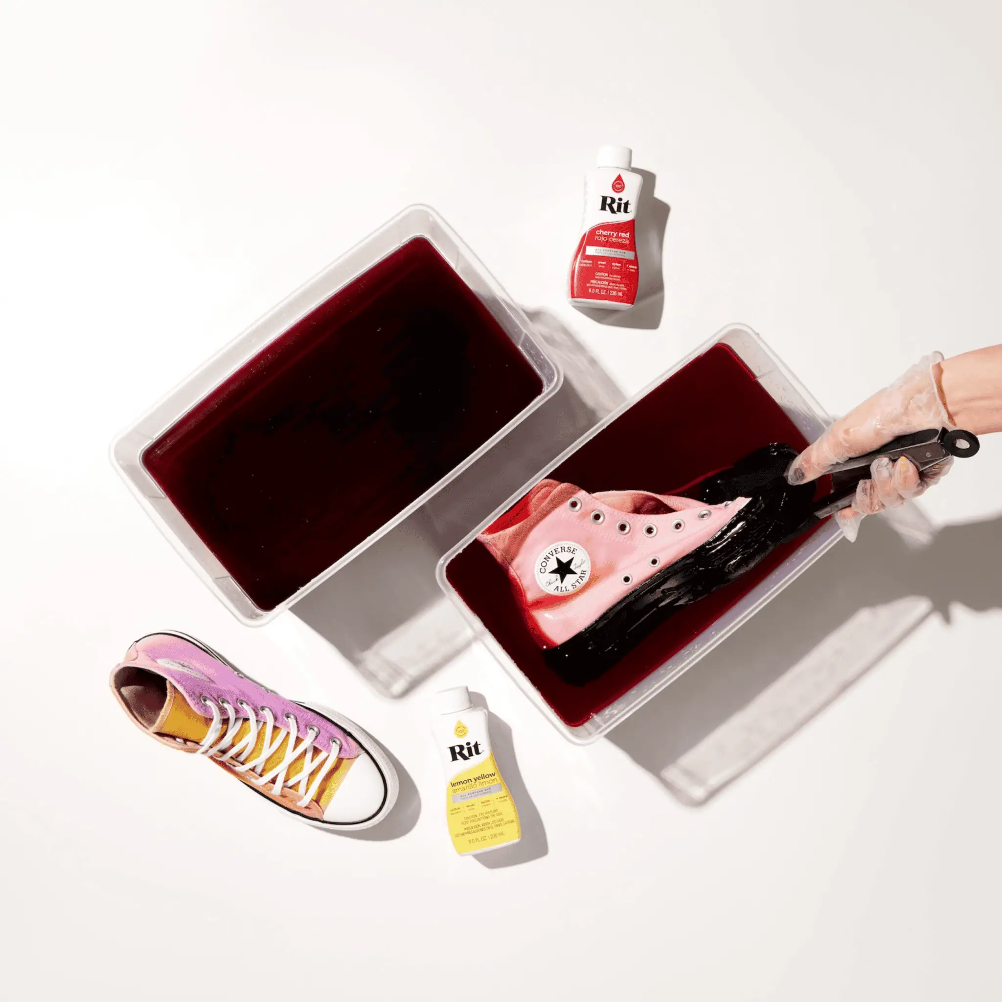 Farbowanie sneakersów RIT DyeMore to szybki sposób na odświeżenie butów. Daffodil Yellow i Apricot Orange dodają im charakteru. Efekt widać natychmiast.