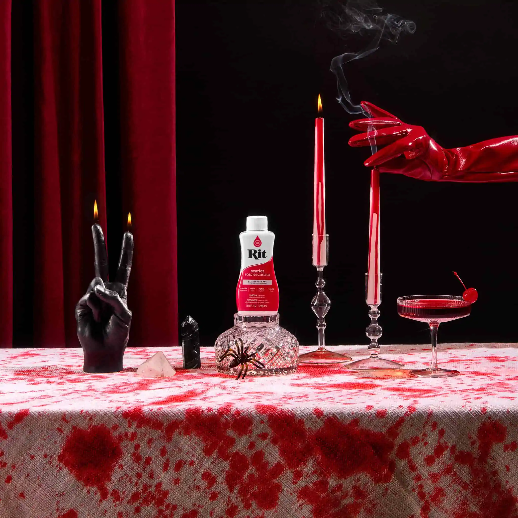 Efekt rozprysków krwi na stole to wyrazisty motyw, który natychmiast przyciąga wzrok. Idealnie sprawdzi się w dekoracjach tematycznych. To sposób na stworzenie odważnej, dramatycznej aranżacji.
