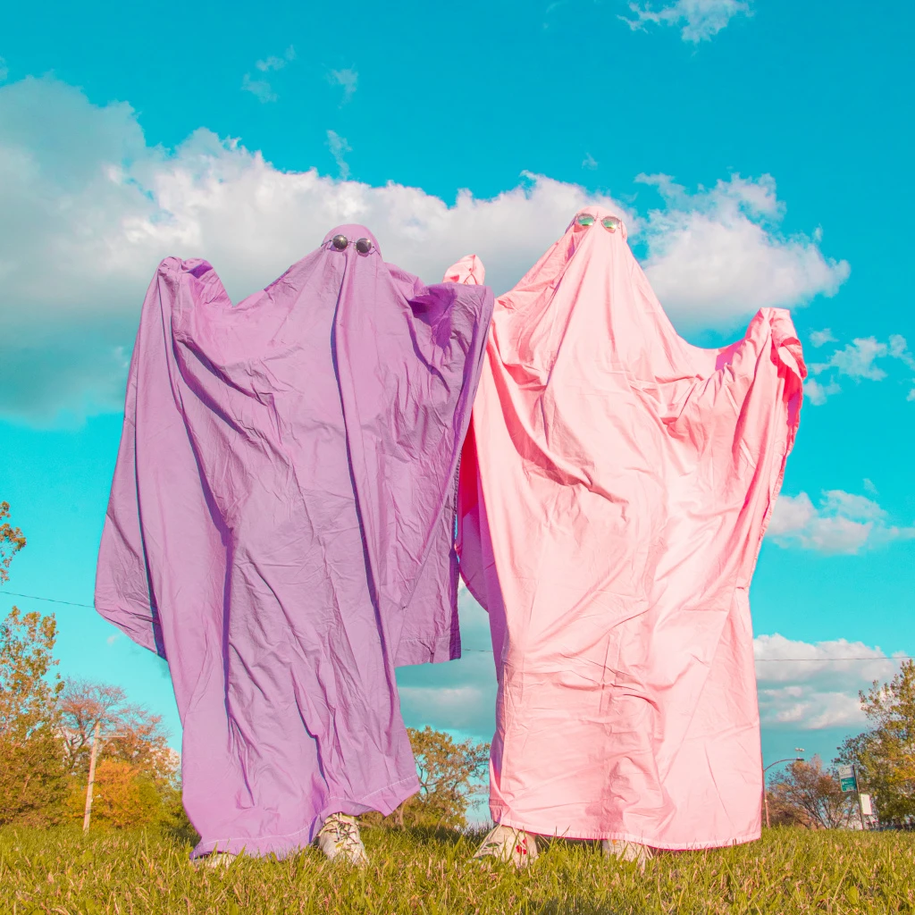 Kolorowy kostium ducha na Halloween łamie schemat i odczarowuje klasyczny strach. Intensywne barwy nadają lekkości i zabawnego charakteru, nie odbierając tajemniczości. To propozycja dla tych, którzy chcą wyróżnić się kreatywnością zamiast mroku.