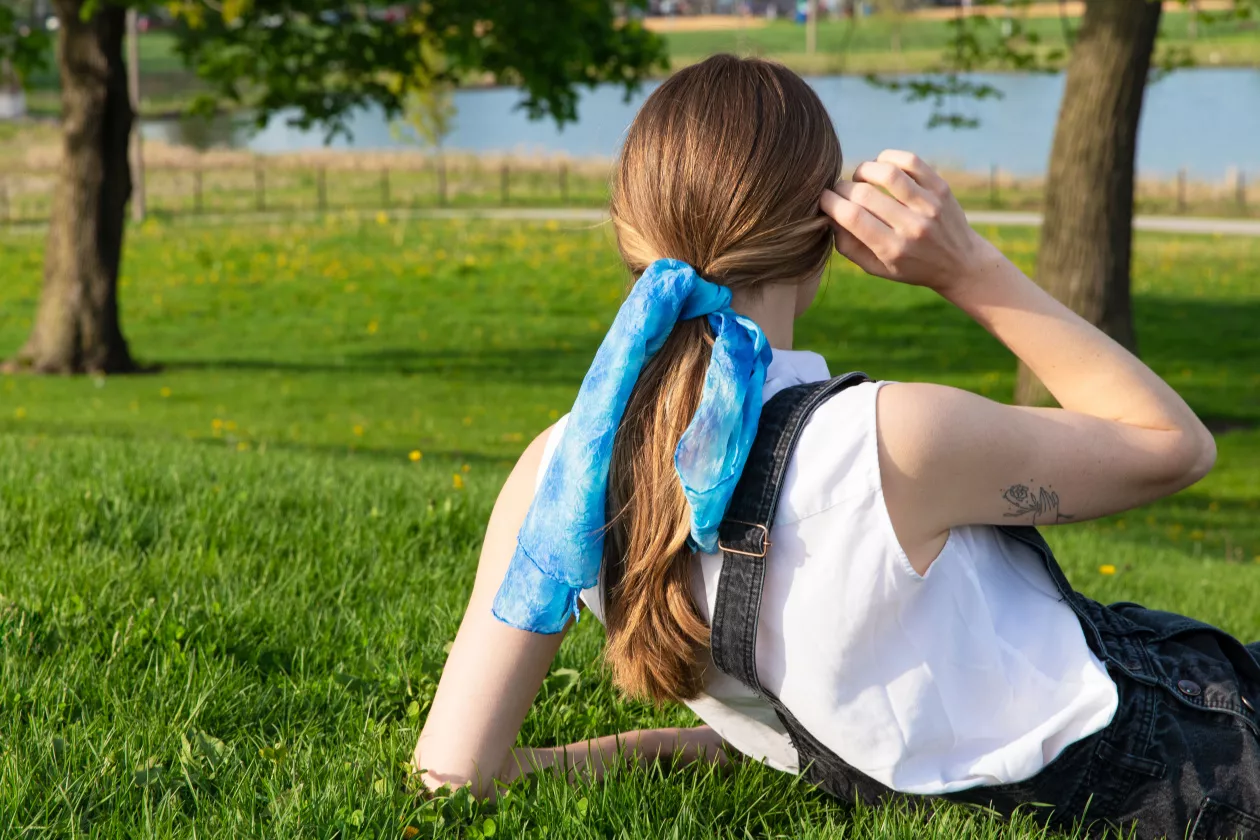 Chusta jedwabna farbowana Shibori to połączenie lekkości materiału z tradycyjną japońską techniką. Subtelne wzory nadają jej elegancji i artystycznego charakteru. To dodatek, który podkreśla styl bez dominowania.
